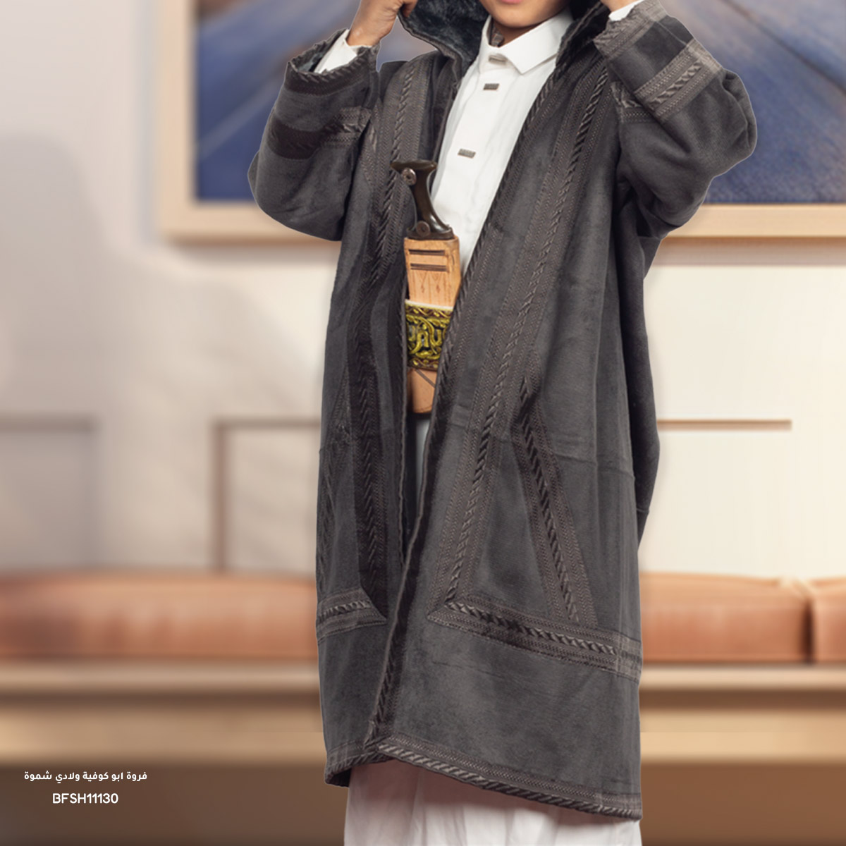 قدّم لطفلك الراحة والأناقة التي يستحقها مع الفروة الولادي أبو كوفية المصنوعة من قماش شموة ناعم وعملي.