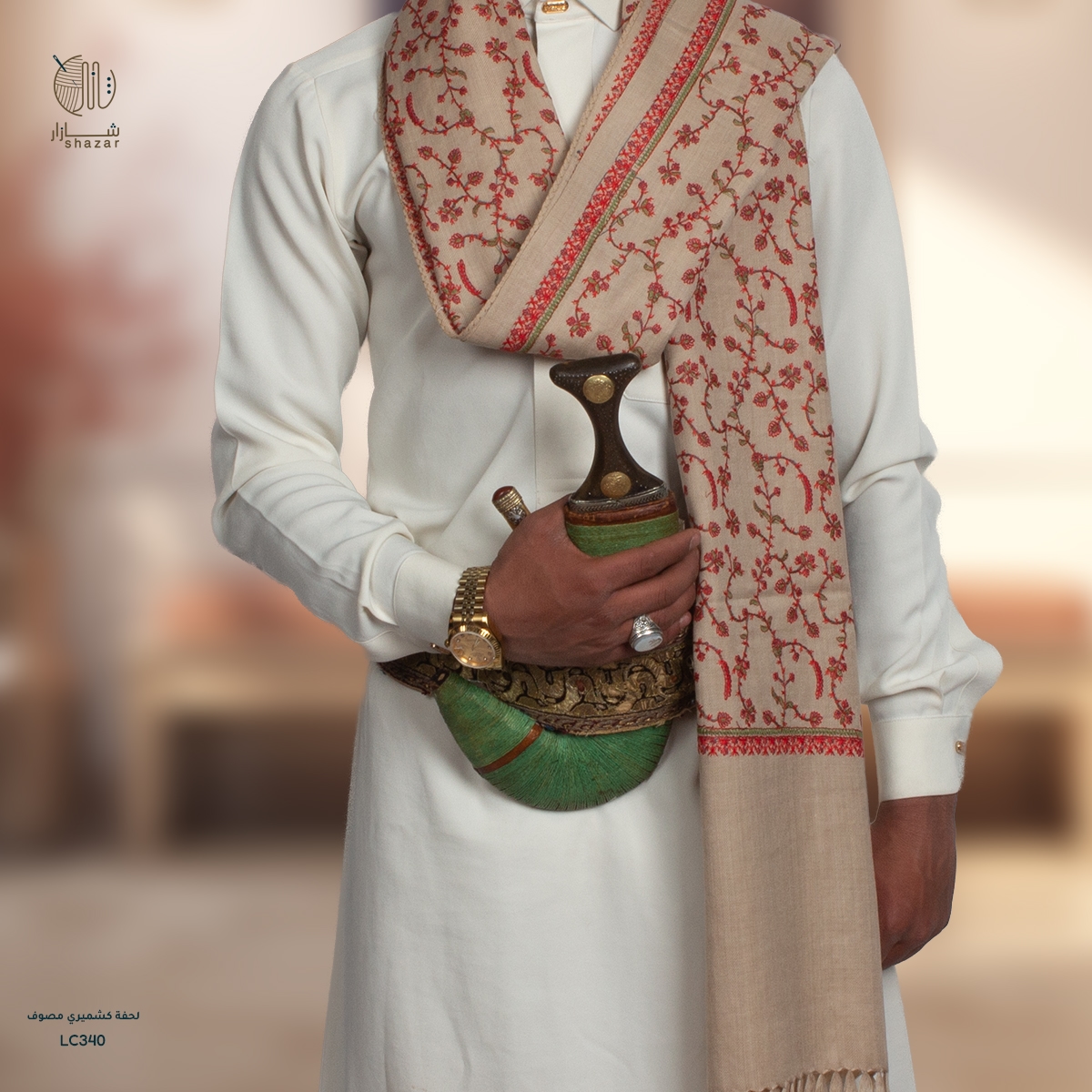 إضافة إلى السلة31٬500 ريال يمني (قديم)(225 SAR)لحفة صوف سوبر تورمة رجالي بتطريز يدوي – فخامة تراثية وأصالة عربية